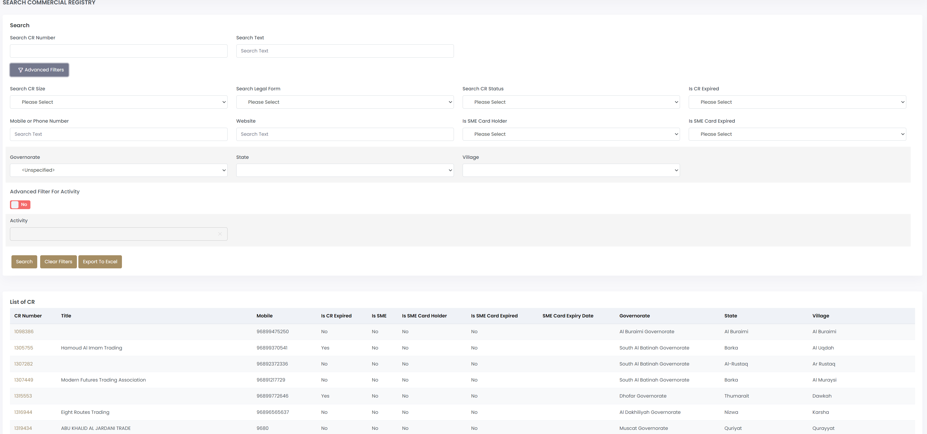 إضافة البحث المتقدم في السجلات التجارية بإستخدام النشاط - المستوى الخامس مباشرة او بإستخدام 5 مستويات